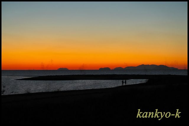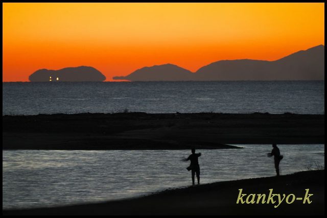 29日に重信川河口で夕日を撮影した後