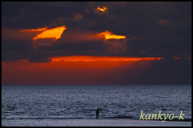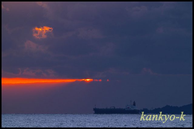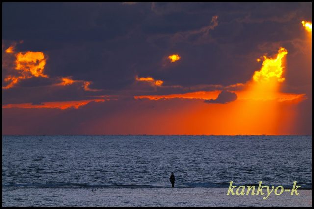 光が差す方向は、夕日の高さと雲の流れに連れて変わり