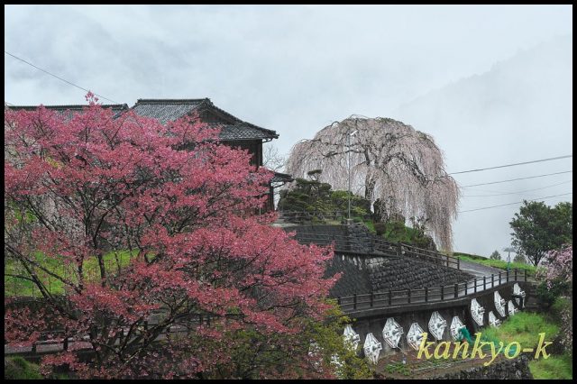 現地の駐車場近くにある大石家のしだれ桜から回りることにして