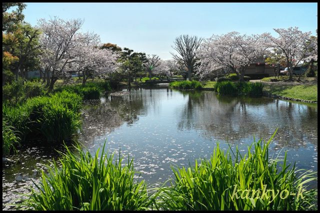 7日の火曜日の午後に松前町のひょこたん池公園の桜が